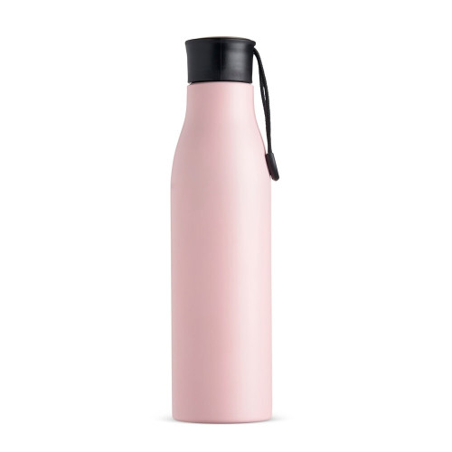 Descrição: Garrafa inox 800 ml com pintura colorida. Possui tampa rosqueável com alça para transporte.