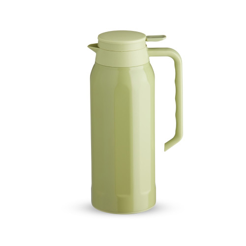 Descrição: Garrafa térmica com capacidade de 1,4 litros, fabricada em aço inoxidável, possui parede dupla e tampa com alavanca de acionamento. Com tampa, alça e base plásticas, a garrafa possui um design com ondulações em relevo e acabamento brilhante.