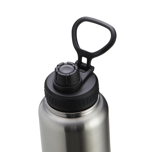 Descrição: Garrafa térmica com capacidade de 1 litro em inox com parede dupla, contém tampa plástica rosqueável com bocal e alça para transporte acoplados.