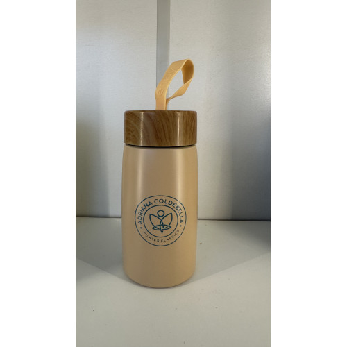 Fabricada em aço inoxidável 304, garante durabilidade e mantém suas bebidas na temperatura ideal por mais tempo. A tampa plástica da garrafa térmica com detalhes em bambu não só adiciona um toque de sofisticação, mas também oferece vedação segura, complementada pela alça de silicone que facilita o transporte.