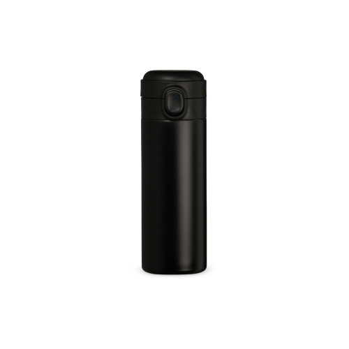 Descrição: Garrafa térmica em inox com parede dupla, capacidade de 400 ml. Tampa com botão central para abertura e borracha interna para vedação.