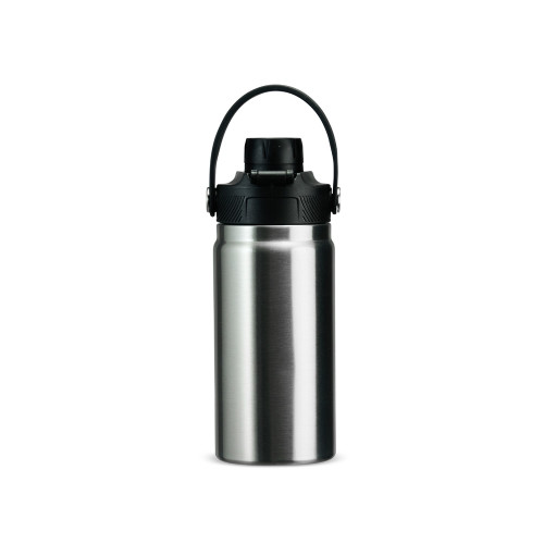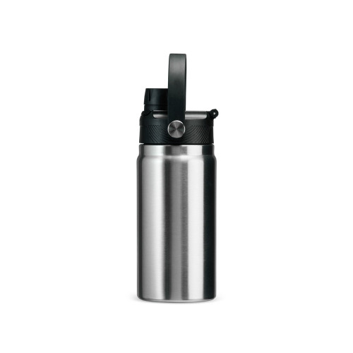 Descrição: Garrafa térmica em inox com capacidade para até 400ml. Apresenta estrutura de parede dupla e vedação a vácuo, que mantém a temperatura de líquidos por mais tempo sem transferência para o exterior. Possui tampa plástica rosqueável com protetor de o bocal e alça fixa para transporte.