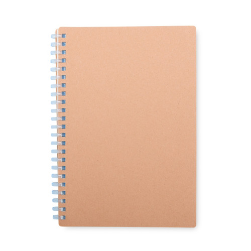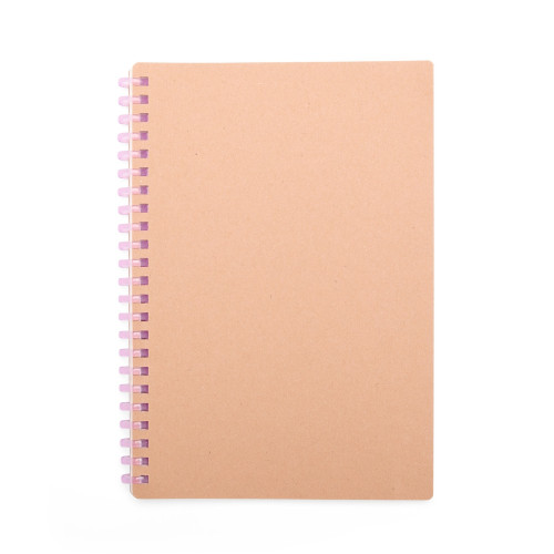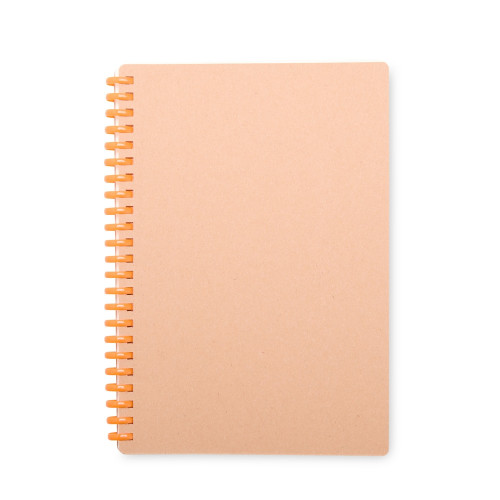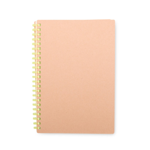 Descrição: Caderno com capa em kraft com encadernação em espiral de plástico. Possui cerca de 80 folhas com pautas.