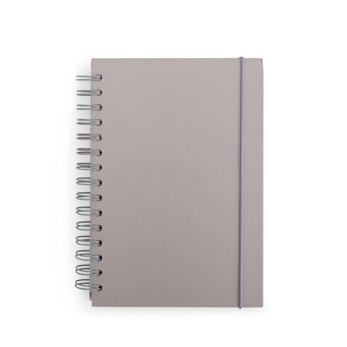 Descrição: Caderno com capa dura em couchê, encadernação wire-o, marcador de páginas em fita de cetim e elástico para fechamento. Conta com aproximadamente 160 folhas brancas com pauta.