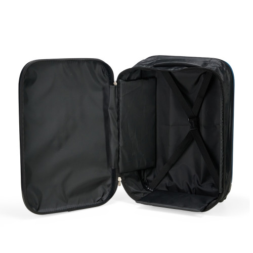 Descrição: Mala de viagem expansível em ABS com bordas em poliéster que, ao ser expandida, comporta a capacidade máxima de 40 litros. Conta com forro interno em poliéster 210D, cinta compressora para roupas e placas rígidas em PVC que mantêm a armação da mala quando desdobrada. Dispõe ainda de duas rodinhas e alça retrátil em alumínio com puxador em plástico. Acompanha uma faixa em poliéster com seção elástica para envolver a mala dobrada.