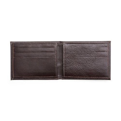 Descrição: Carteira em couro com design compacto e sem fechamento. Possui seis divisórias internas para cartões e documentos e um compartimento para cédulas.