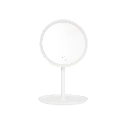 Descrição: Um espelho de mesa moderno e elegante com estrutura totalmente em plástico. Fácil de montar e com possibilidade de rotação de até 90 graus, ele possui iluminação em LED recarregável, com três níveis de intensidade que podem ser ajustada pelo botão de toque no espelho. Acompanha cabo USB-C.