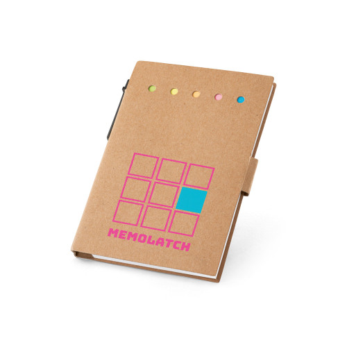 6 blocos adesivados com 25 folhas cada e capa em papel kraft reciclado. Incluso caderno com 100 páginas lisas e esferográfica em papel kraft reciclado, com escrita em azul. A capa e as notas adesivas são feitos de papel proveniente de gestão florestal sustentável. 100 x 150 mm