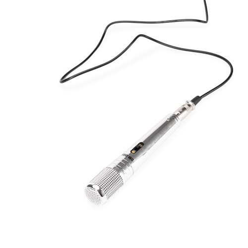 Descrição: Microfone dinâmico unidirecional com estrutura leve em alumínio e malha de proteção metálica. Conta com chave liga/desliga na parte frontal. Acompanha cabo XLR-P10 com 4 metros de comprimento.