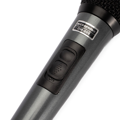 Descrição: Microfone dinâmico unidirecional com estrutura leve em plástico, cabeça circular com malha de proteção metálica e chave liga/desliga. Acompanha cabo XLR-P10 com 4 metros de comprimento.