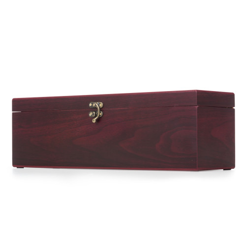 Descrição: Kit vinho 4 peças em maleta de madeira na cor vinho. Possui: wine collar, bico condutor com tampa, tampa de bico e saca rolha. Parte interna revestida com espuma e tecido vermelho, possui dobradiças douradas e trava metálica, parte inferior com borrachas anti-deslizantes. NÃO ACOMPANHA A GARRAFA DE VINHO