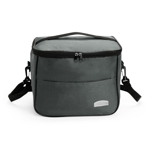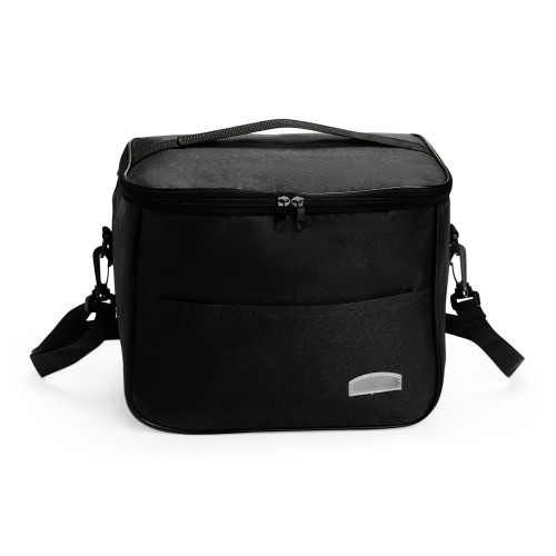 Descrição: Bolsa térmica feita em Oxford resistente à água, com fechamento em zíper e capacidade de até 13 litros. Possui revestimento térmico em folha de alumínio, bolso frontal externo e duas alças: uma fixa localizada na tampa e outra transversal removível.