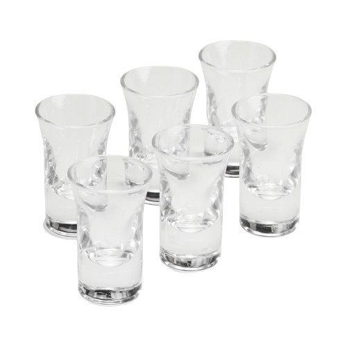 Descrição: Kit com seis copos de vidro com capacidade máxima de 30ml cada.