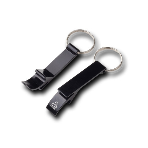 Descrição: Kit composto por uma caneta e um chaveiro abridor, ambos fabricados em alumínio reciclado. O abridor possui formato de pé de galinha, próprio para abrir tampas de garrafas. A caneta tem corpo sextavado com régua impressa em uma das faces, acionamento por clique e ponteira touch emborrachada para uso em dispositivos touchscreen, além de carga esferográfica azul de 1,0 mm. Acompanha estojo de papelão com berço de espuma revestido em tecido aveludado.