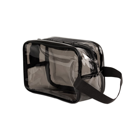 Descrição: Nécessaire impermeável em PVC com fechamento em zíper e alça lateral em nylon.
