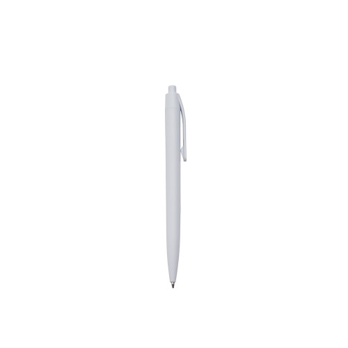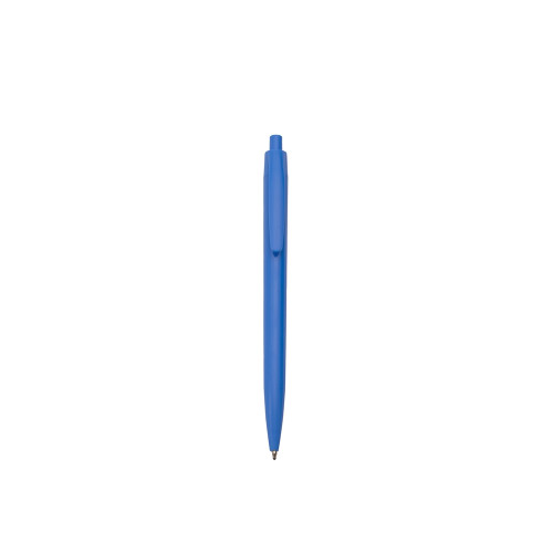 Descrição: Caneta feita inteiramente em plástico. Conta com acionamento em por clique e carga esferográfica azul de 1.0mm.