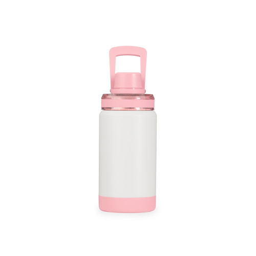 Descrição: Garrafa Térmica em inox 304, pintura eletrostática e capacidade para até 400ml. Possui estrutura em parede dupla e vedação a vácuo para oferecer a conservação da temperatura de líquidos por mais tempo. Dispõe ainda de tampa rosqueável em plástico, com protetor rosqueável para o bocal e alça para transporte. Acompanha base antiderrapante removível.