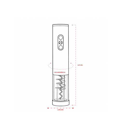 Descrição: Saca-rolhas elétrico com estrutura em ABS, policarbonato, alumínio e inox, além de painel com iluminação em LED e botões emborrachados. Funciona com quatro pilhas AA (não inclusas) e acompanha cortador de lacre.