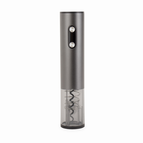 Descrição: Saca-rolhas elétrico recarregável com estrutura em liga de alumínio, ABS, policarbonato e aço carbono, além de painel com iluminação em LED e botões de controle. Acompanha cabo USB-C para carregamento.