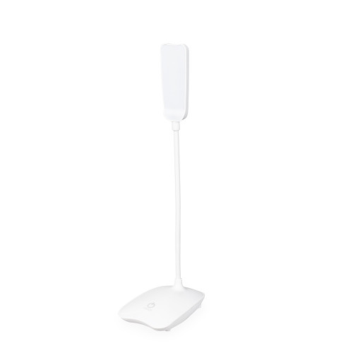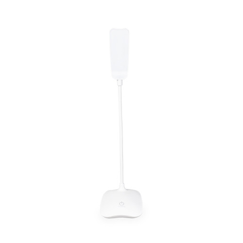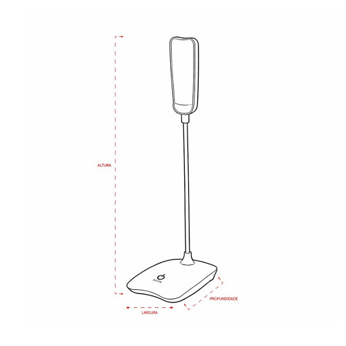 Descrição: Luminária recarregável com 16 LEDs, estrutura em plástico e haste articulável em múltiplos ângulos. Possui acionamento por toque na base para a seleção de três níveis diferentes de iluminação e entrada Micro USB. Acompanha cabo micro USB para carregamento.