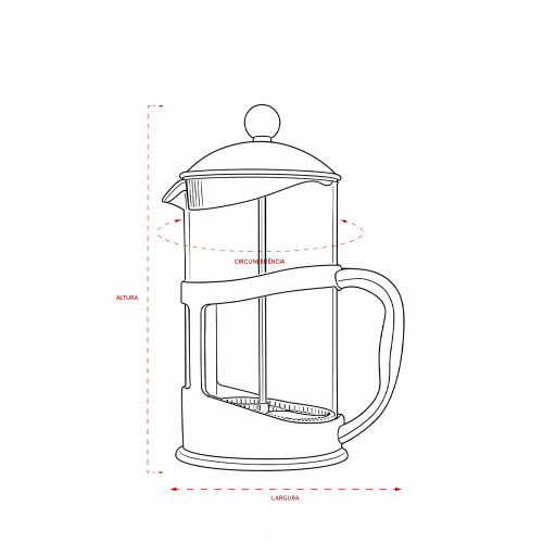 Descrição: Cafeteira tipo prensa francesa em vidro com capacidade para até 1 litro, além de alça e detalhes em plástico. Possui tampa em plástico com êmbolo e tela em inox.
