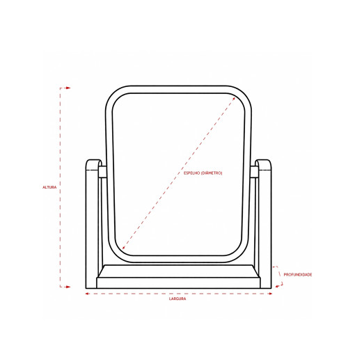 Medidas aproximadas para gravação (CxL): 12 cm x 8 cm (parte posterior do espelho) - 2 cm x 10 cm (base)
