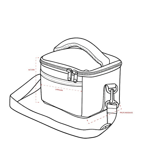 Descrição: Bolsa térmica em tecido emborrachado impermeável com fechamento em zíper com capacidade para até 5 litros. Conta com revestimento térmico interno em espuma PAC e revestimento de folha de PVC antivazamento, além de bolso em malha costurado na parte interna da tampa. Possui ainda bolso frontal e alça de mão com revestimento em espuma. Acompanha alça transversal ajustável.