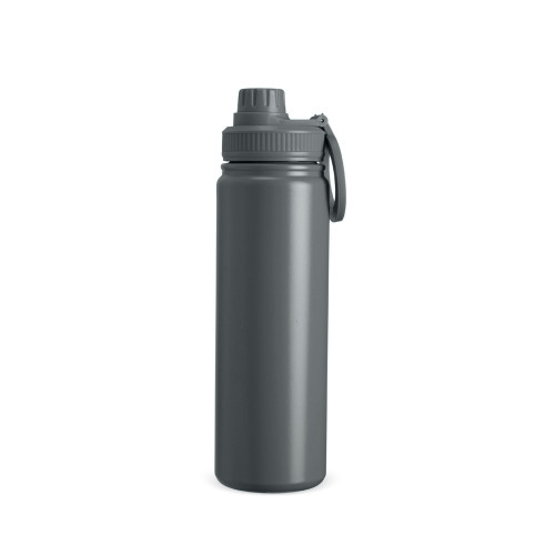 Descrição: Garrafa térmica em inox com pintura eletrostática e capacidade para até 750ml. Conta com estrutura em parede dupla e isolamento a vácuo, permitindo a manutenção da temperatura de líquidos por mais tempo, além de evitar vazamentos. Possui tampa rosqueável em plástico com protetor para o bocal e alça circular magnética compatível com smartphones da linha iPhone da Apple.