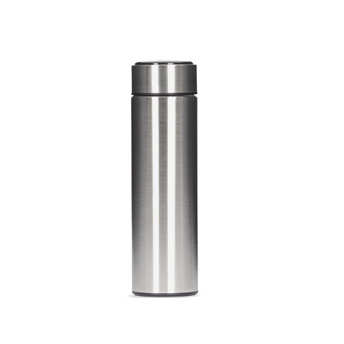 Descrição: Garrafa térmica de parede dupla em inox, capacidade de 400ml. Tampa com display touch screen de temperatura em led, acompanha infusor de bebidas.