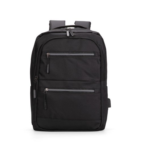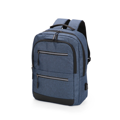 Descrição: Mochila em tecido Oxford impermeável com detalhes em couro sintético e capacidade máxima de 18 litros. Possui quatro bolsos pequenos e divisória acolchoada para notebook de até 15,6 polegadas no compartimento principal. Apresenta compartimento frontal e dois bolsos em tamanhos diferentes com faixas refletivas na região dos zíperes, além de um bolso e um adaptador USB posicionados em laterais opostas. dispõe de alça superior de mão e duas alças de ombro, estas com revestimento em tecido respirável. Obs.: A posição do adaptador USB pode variar conforme o lote do produto.