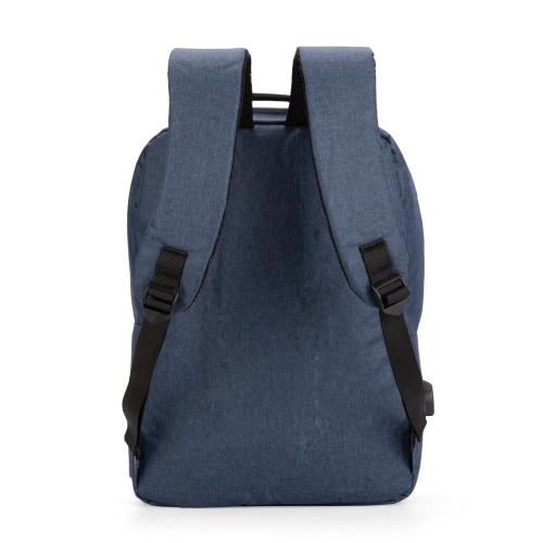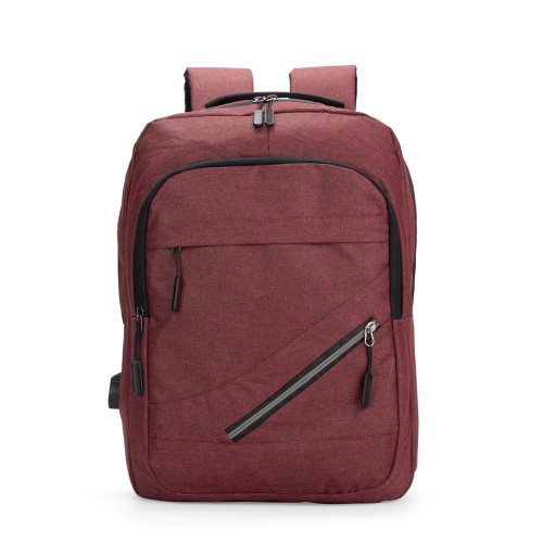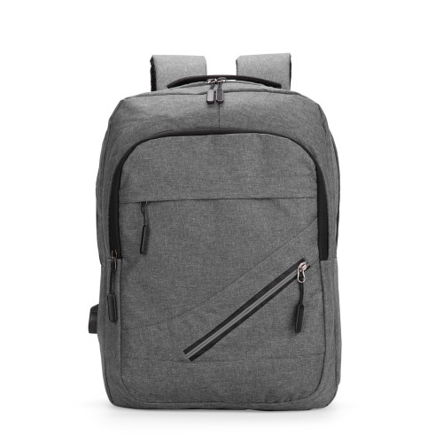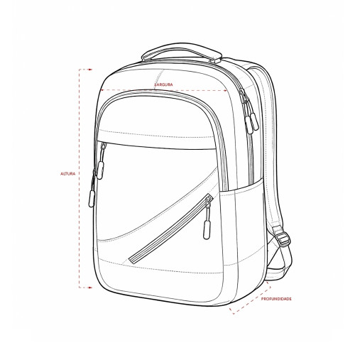 Descrição: Mochila em tecido Oxford resistente à água com capacidade máxima de 18 litros. Possui compartimento principal com quatro bolsos pequenos e divisória acolchoada para notebook de até 15,6 polegadas. Apresenta um compartimento frontal e dois bolsos em tamanhos diferentes, um deles com faixa refletiva na área do zíper, além de um bolso e um adaptador USB posicionados em laterais opostas. Dispõe de alça superior de mão e duas alças de ombro, estas com revestimento em tecido respirável. Obs.: A posição do adaptador USB pode variar conforme o lote do produto.