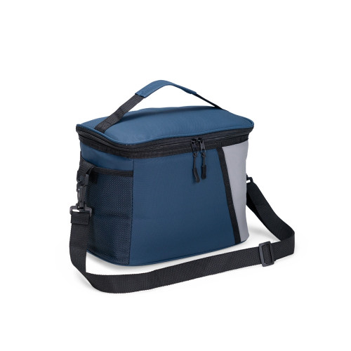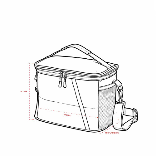Descrição: Bolsa térmica confeccionada em poliéster com revestimento impermeável em PVC de limpeza fácil e capacidade máxima de 12 litros. Possui camada interior em espuma branca e revestimento térmico em filme de alumínio, ideal para conservar a temperatura de alimentos e bebidas por mais tempo. Conta ainda com dois bolsos laterais em tela de nylon com elástico, alça superior de mão e alça transversal ajustável para facilitar o transporte.