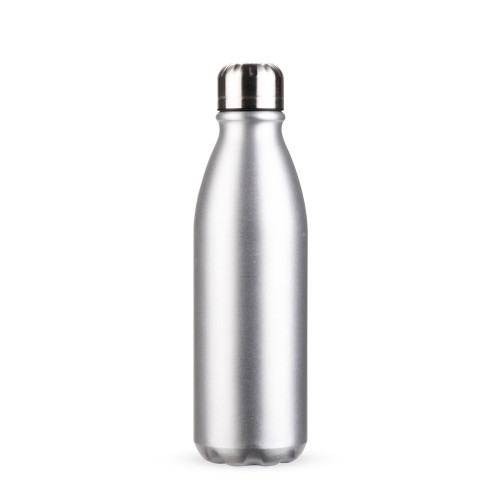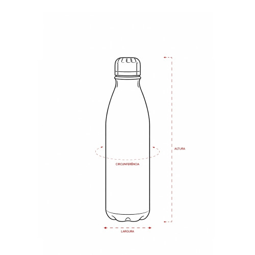 Descrição: Garrafa em alumínio com acabamento em verniz fosco, revestimento plástico no bocal e capacidade para até 750ml. Possui tampa rosqueável em alumínio com interior em plástico.