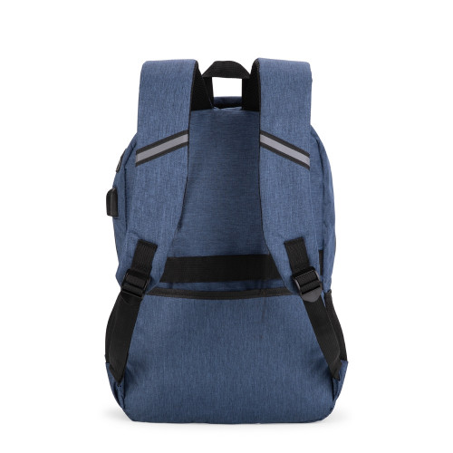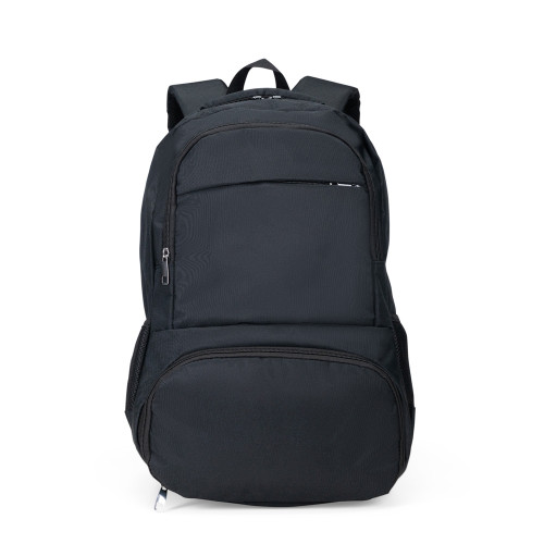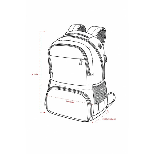 Descrição: Mochila confeccionada em poliéster 300D reforçado, com capacidade de até 26 litros. Possui 5 compartimentos, sendo o principal com divisória interna para notebook de até 15,6 polegadas e um compartimento térmico com revestimento interno em folha térmica aluminizada, ideal para manter a temperatura dos alimentos sempre frescos. Conta também com bolso antifurto nas costas e mais dois compartimentos de tamanhos diferentes para melhor organização. Possui dois bolsos laterais em malha com elástico, suporte externo USB, saída para fone de ouvido, engate para mala de viagem, além de alças de ombro com revestimento de espuma respirável e listras refletivas.