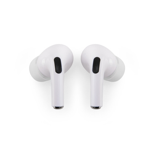 Descrição: Fones de ouvido sem fio com estrutura em plástico resistente a leves respingos de água, conexão Bluetooth 5.4, comandos por toque e microfone integrado para chamadas de áudio e vídeo. Conta com estojo de carregamento com entrada USB-C. Acompanha cabo USB-C para recarga.