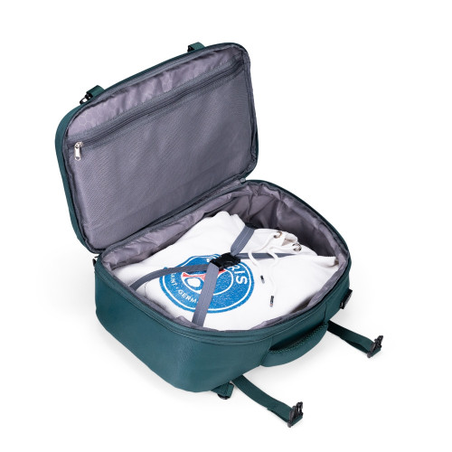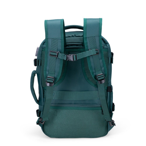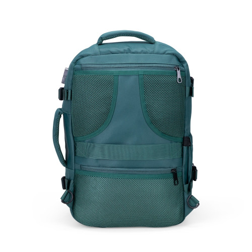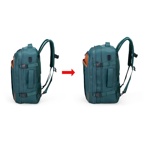 Descrição: Mochila expansível com capacidade máxima de 29 litros, obtida a partir da abertura do compartimento de expansão. Confeccionada em nylon 290D impermeável com detalhes em PU, possui compartimento interno com cinta compressora de engate plástico e bolso telado, além de divisória para notebook de até 15,6 polegadas. Contém dois bolsos frontais em tamanhos diferentes e dois bolsos traseiros, sendo um com sistema antifurto e outro para armazenamento das alças de costas, o que permite o uso em formato de mala. Apresenta também bolso lateral aberto e suporte externo USB. Dispõe de dois pares de engates compressores nas laterais, além de engate para alça de malas e revestimento acolchoado nas alças de mão e no painel traseiro. Obs.: A posição do adaptador USB pode variar conforme o lote do produto.