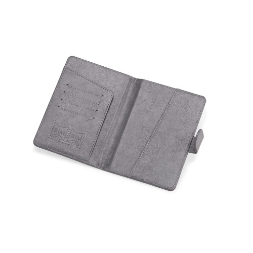 Descrição: Porta-passaporte em poliuretano (PU). Conta com fechamento magnético, dois bolsos internos, sendo um deles com quatro compartimentos para cartões, além de dois bolsos menores para cartões SIM.