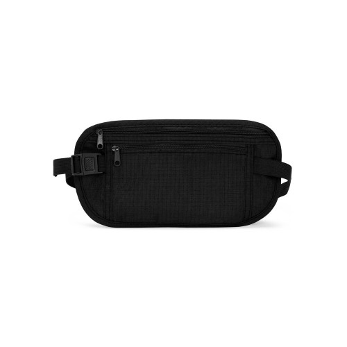 Descrição: Pochete tipo doleira confeccionada em nylon. Possui design compacto antifurto, dois bolsos de tamanhos diferentes e cinto ajustável em elástico com fivela de encaixe.
