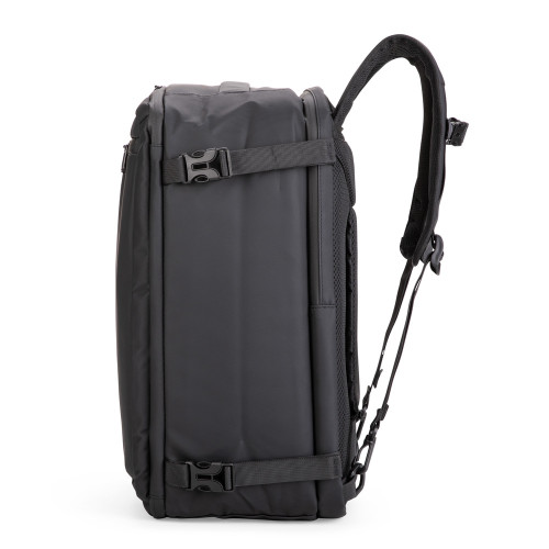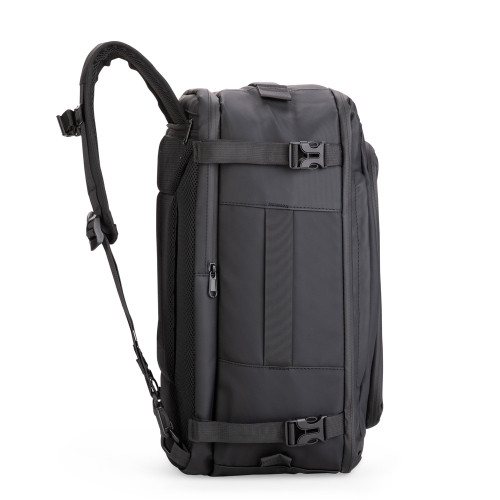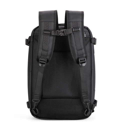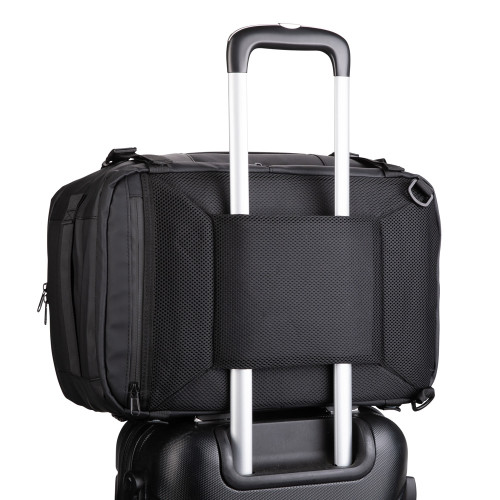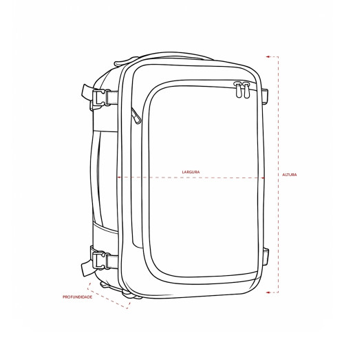 Conta com múltiplos compartimentos para organização, incluindo bolsos frontais, traseiros e espaço dedicado para notebook de até 17,3”. Um dos diferenciais é o compartimento traseiro que permite guardar as alças e utilizar a mochila como mala, aumentando sua versatilidade para viagens.