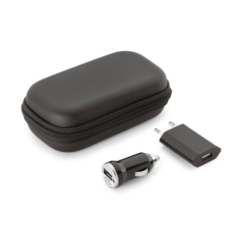Kit de adaptadores USB. ABS. Incluso adaptador de corrente DC 110V/220V e adaptador para carro DV 12-24V. Fornecido com bolsa EVA. Bolsa: 112 x 80 x 45 mm