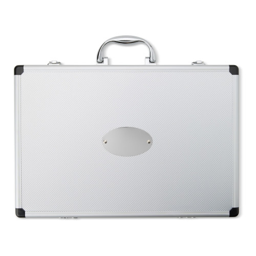 Descrição: A solução ideal para quem valoriza qualidade nos cortes e organização na cozinha. O kit inclui 5 facas em aço inoxidável, com diferentes tamanhos, perfeitas para uma experiência gourmet. Acompanha uma maleta de alumínio texturizado, com interior revestido de veludo e duas travas que garantem maior segurança. Além disso, a maleta oferece espaço para personalização, tornando o kit ainda mais exclusivo.