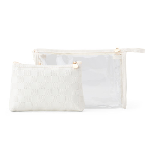 Descrição: Kit nécessaire duas peças em PU e PVC.