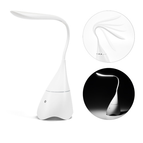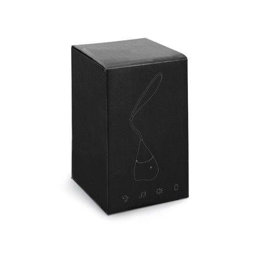 Luminária de mesa com caixa de som. ABS. Com 18 LEDs de alto brilho, botão tátil e braço flexível. Transmissão por bluetooth e ligação stereo 3,5 mm. Com 5W/4Ω. Autonomia até 6 h. Conexão à playlist do dispositivo móvel. Incluso cabo USB para carregar. Fornecida em caixa presente. 100 x 225 x 100 mm | Caixa: 110 x 235 x 105 mm