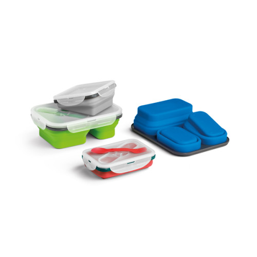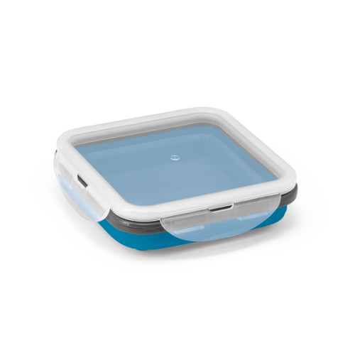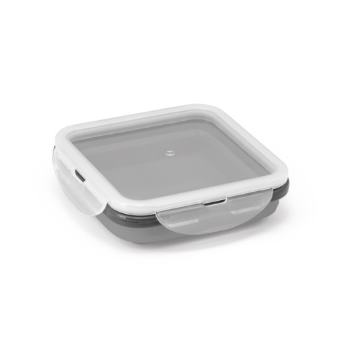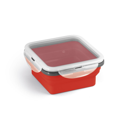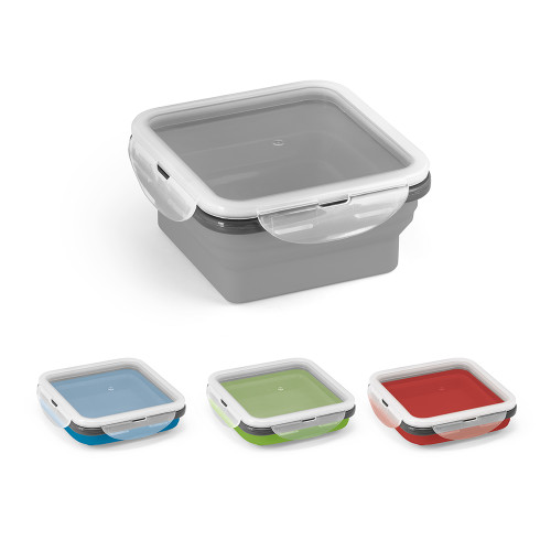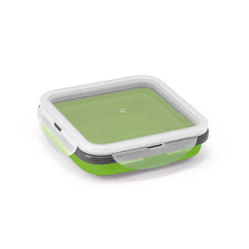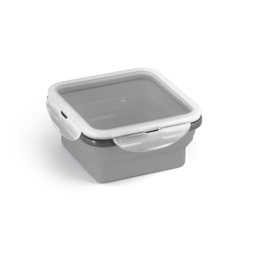 Marmita retrátil. Silicone e PP. Com 1 compartimento. Capacidade: 580 ml. Food grade. 138 x 138 x 64 mm | Dobrada: 138 x 138 x 34 mm
