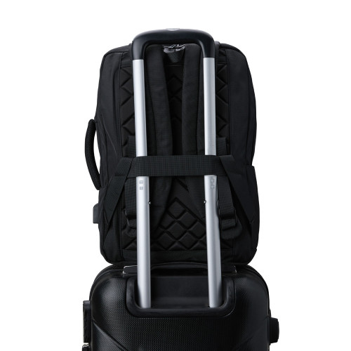 Descrição: Mochila confeccionada em Nylon, 21 litros, com 4 compartimentos, sendo o principal com bolso para notebook de 15.6 polegadas. Possui dois bolsos externos, bolsos e divisórias internas para acessórios. A mochila possui suporte externo USB, alça com bolso integrado para cartões, alça para engate em malas de viagem e duas alças de mão, sendo uma delas para o transporte da mochila no formato pasta.