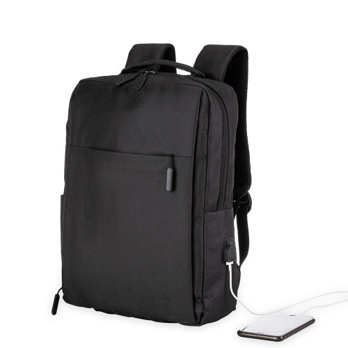 - Funcionalidades: Compartimento para notebook até 15.6", saída USB externa com cabo acoplado, bolsos laterais e frontais com zíper.