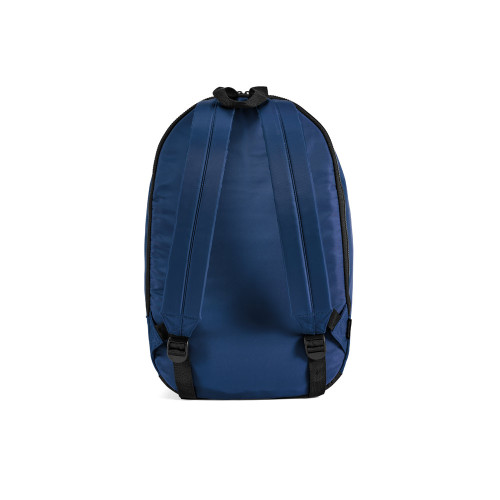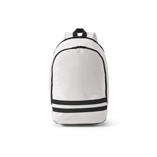 Mochila em 290T poliéster reciclado (100% rPET), em sarja com forro em 210D poliéster reciclado (100% rPET). Contém compartimento posterior com divisória para notebook até 15" e compartimento frontal totalmente forrado. Parte posterior e alças almofadadas. Contém duas faixas pretas refletoras na parte frontal. Capacidade até 18 L. 300 x 470 x 150 mm