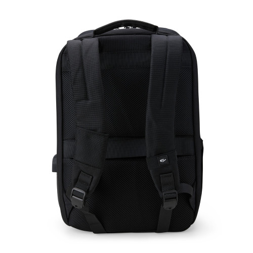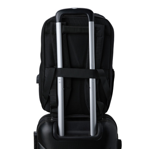 Descrição: Mochila confeccionada em Nylon 23 litros com detalhes em couro sintético. Contém 5 compartimentos, sendo um bolso com faixa refletiva, divisórias internas para acessórios, bolso para tablet e notebook 15.6, bolso antifurto nas costas, bolso externo na lateral com elástico, suporte externo USB, alça para encaixe em malas de viagem, alças da mochila possuem bolsos integrados para suporte de óculos e cartões.