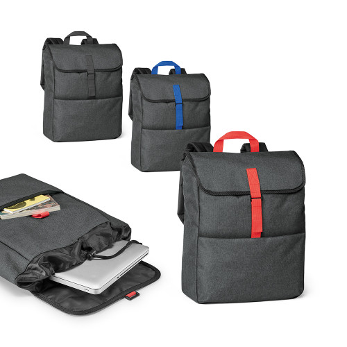 Mochila para notebook. 600D de alta densidade. Compartimento principal com divisória almofadada para notebook até 15.6". Bolso frontal com zíper. Parte posterior e alças almofadadas. 290 x 370 x 110 mm