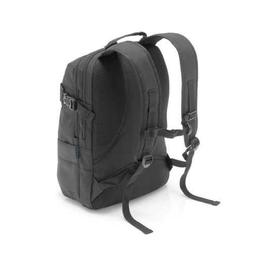Mochila para notebook em 840D jacquard e 300D com 2 compartimentos. Compartimento posterior forrado e almofadado, com 2 divisórias almofadadas para notebook até 15.6'' e tablet 10.5''. Compartimento frontal forrado, com diversos bolsos interiores. A mochila tem 3 bolsos frontais e 2 bolsos laterais. Parte posterior almofadada, com sistema de apoio acolchoado para as costas e alças almofadadas. 320 x 450 x 190 mm